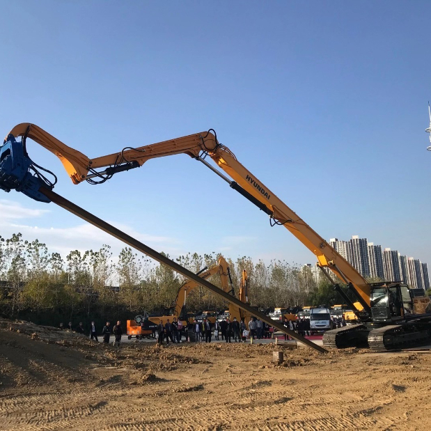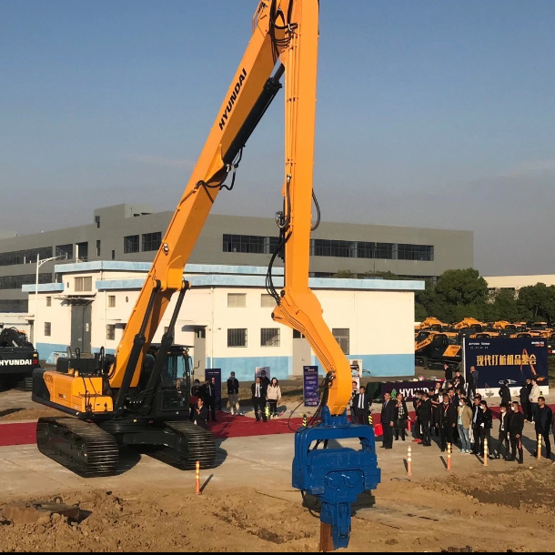 - Montage am Langausleger: Erweitert die Reichweite und Flexibilität des Betriebs, ideal für groß angelegte Gründungsbauarbeiten und komplexe Baustellen, die eine erweiterte Rammreichweite erfordern.