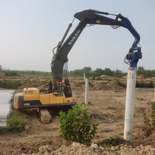 Hydraulischer Vibrierenstapelfahrer ziehen den Nutzen aus Hochfrequenzerschütterung erzeugt durch Motor und fahren die Erschütterungskraft zum hydraulischen Vibrierenstapelfahrer für den umgebenden Boden verflüssigend u. seine Struktur zu brechen, um die Reibung zu verringern durch; die Stapelform der Bodenboden über Bagger dann, anhäufend oder bohrend. Die Hochfrequenzerschütterung angetrieben durch den Hydraulikmotor des Baggers.