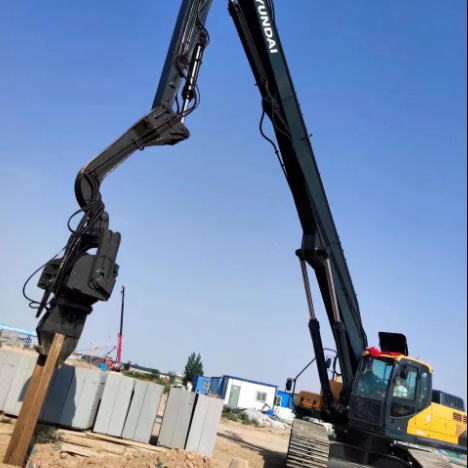 Hydraulischer Vibrierenstapelfahrer ziehen den Nutzen aus Hochfrequenzerschütterung erzeugt durch Motor und fahren die Erschütterungskraft zum hydraulischen Vibrierenstapelfahrer für den umgebenden Boden verflüssigend u. seine Struktur zu brechen, um die Reibung zu verringern durch; die Stapelform der Bodenboden über Bagger dann, anhäufend oder bohrend. Die Hochfrequenzerschütterung angetrieben durch den Hydraulikmotor des Baggers.