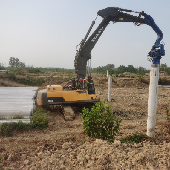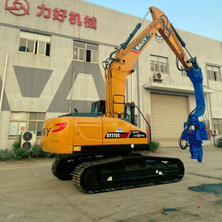 Hydraulischer Vibrierenstapelfahrer ziehen den Nutzen aus Hochfrequenzerschütterung erzeugt durch Motor und fahren die Erschütterungskraft zum hydraulischen Vibrierenstapelfahrer für den umgebenden Boden verflüssigend u. seine Struktur zu brechen, um die Reibung zu verringern durch; die Stapelform der Bodenboden über Bagger dann, anhäufend oder bohrend. Die Hochfrequenzerschütterung angetrieben durch den Hydraulikmotor des Baggers.