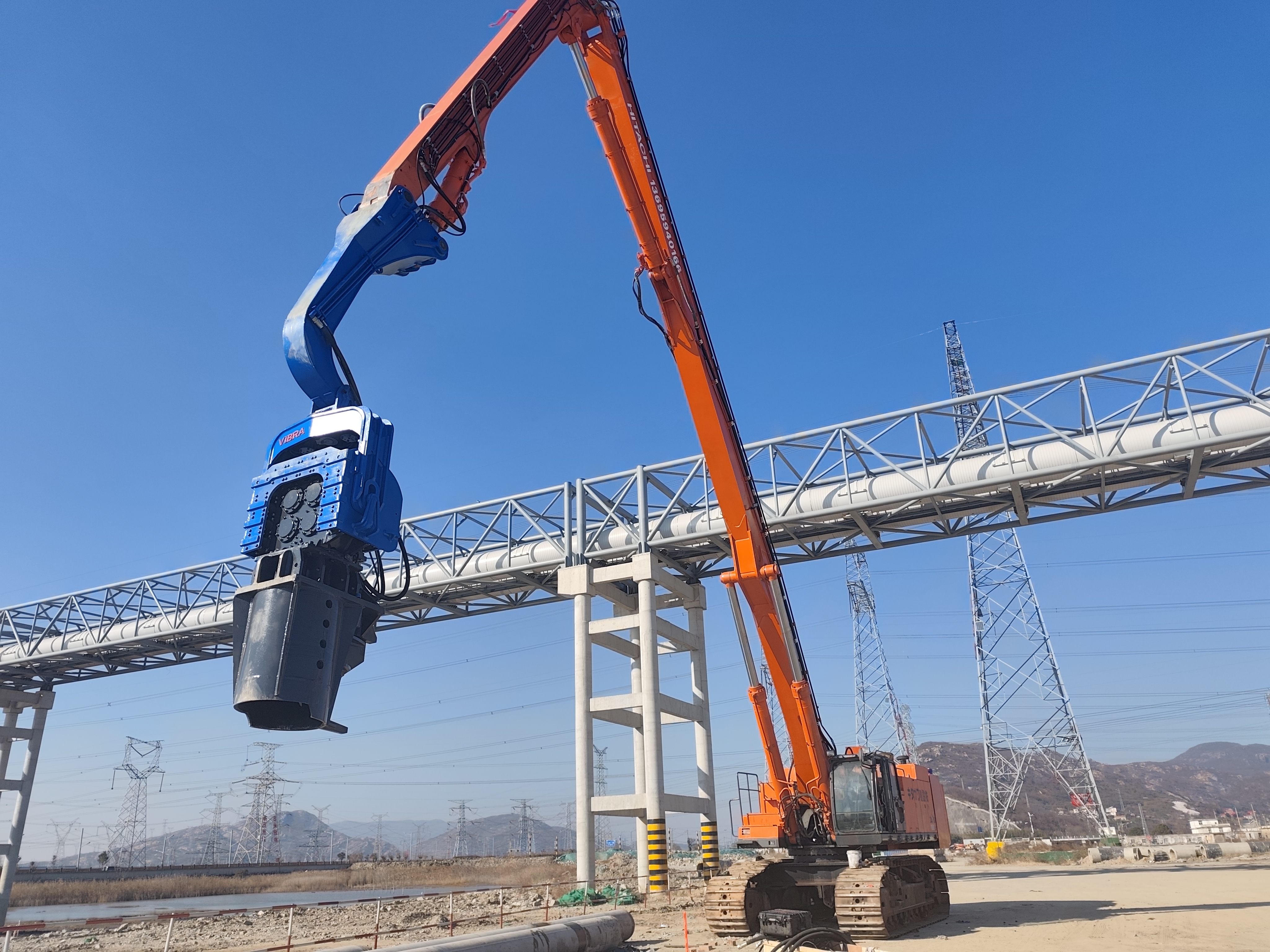 Dieser Pile-Driver ist für 48-52 Tonnen große Bagger geeignet und bietet Vielseitigkeit und Flexibilität in verschiedenen Projektumgebungen.Die FV-500 kann Pfähle bis zu einer maximalen Länge von 18 Metern antreiben, so dass sie für eine Vielzahl von Baubedarfen geeignet ist.