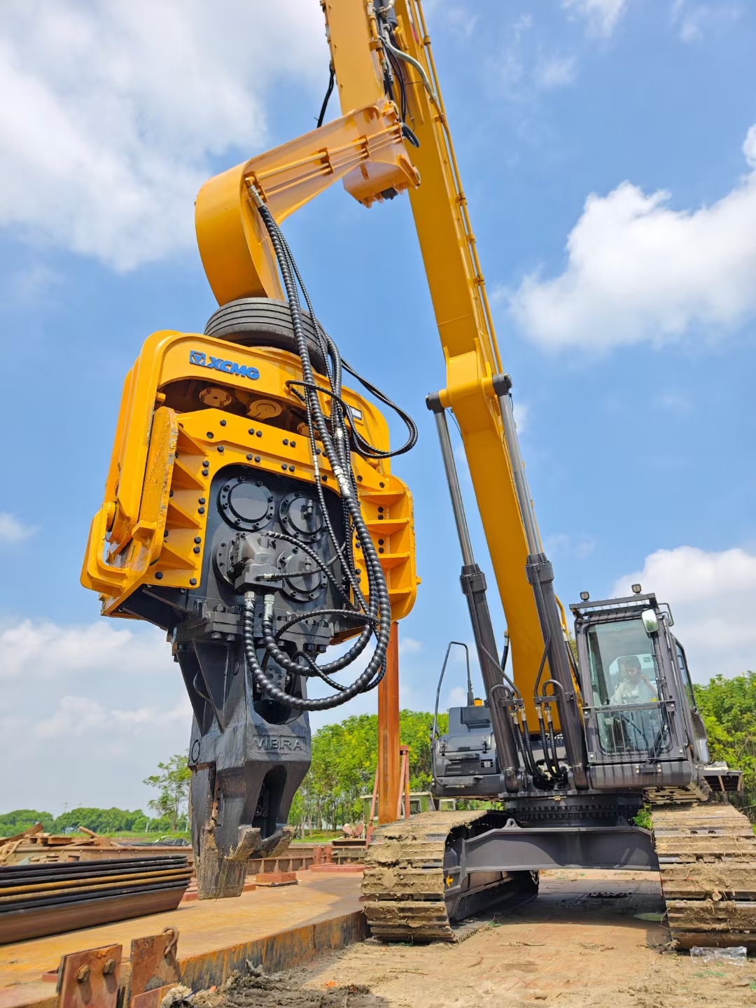 Erleben Sie die Effizienz und Zuverlässigkeit des vierexzentrischen Pile Drivers für Ihr nächstes Bauprojekt.oder die Installation von StützmauernDiese Maschine liefert die Kraft und Präzision, die man braucht, um die Arbeit richtig zu erledigen.